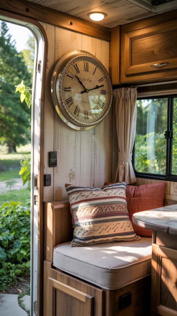 Finish your French country RV with a decorative clock. Choose a wall clock with Roman numerals and a distressed finish for vintage appeal.