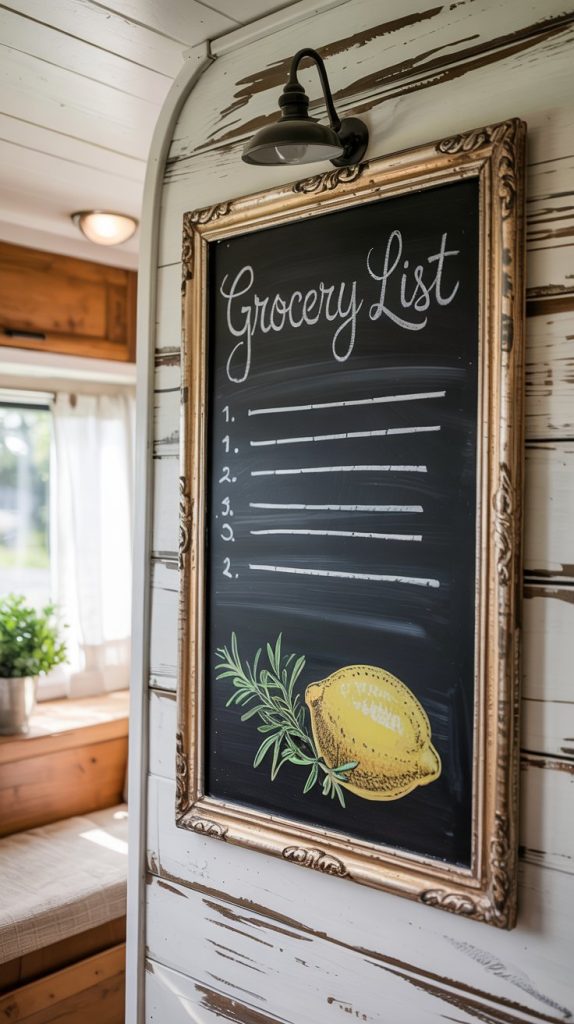 Choose a chalkboard with a vintage frame for extra charm. Mount it in your kitchen or entryway to keep your RV organized and stylish.