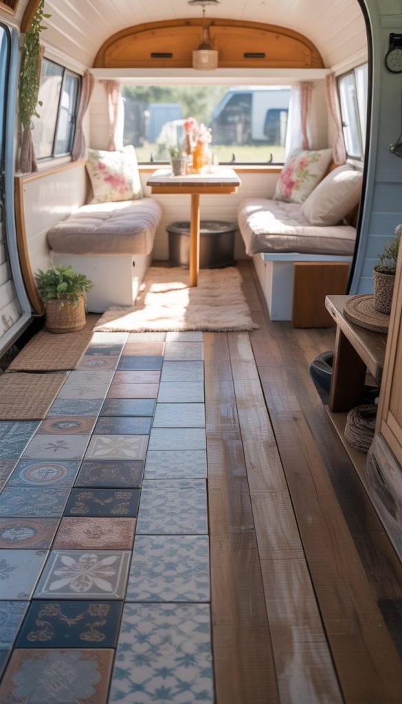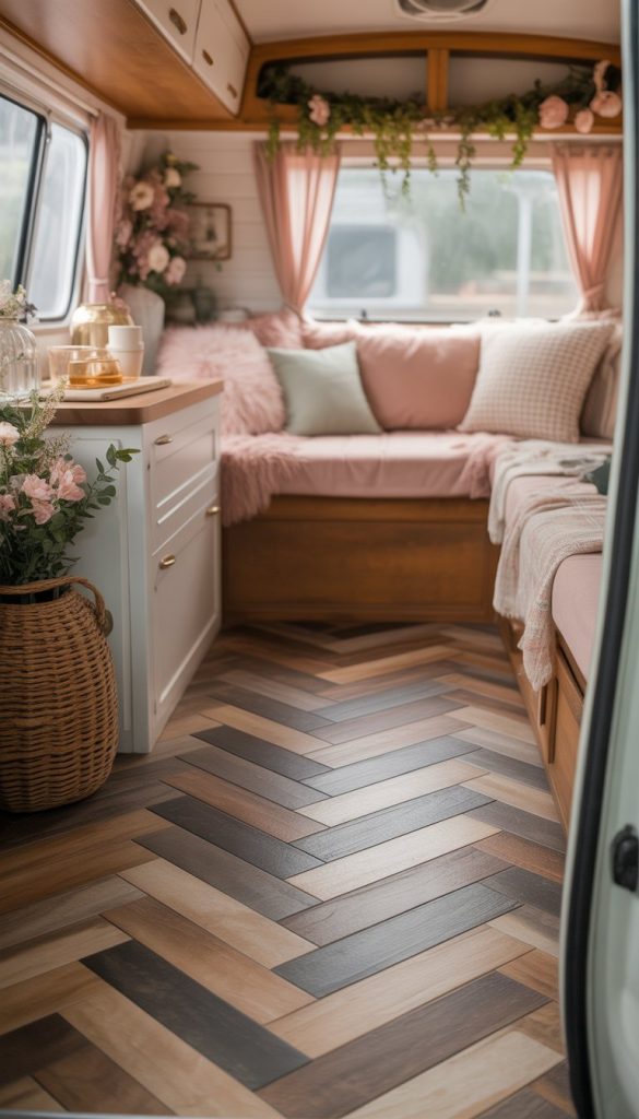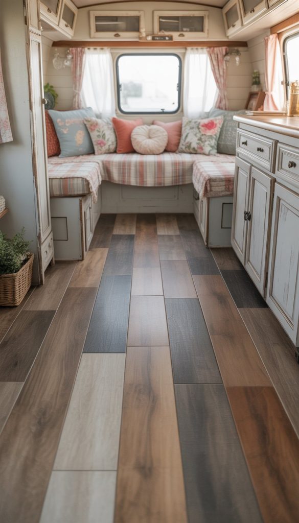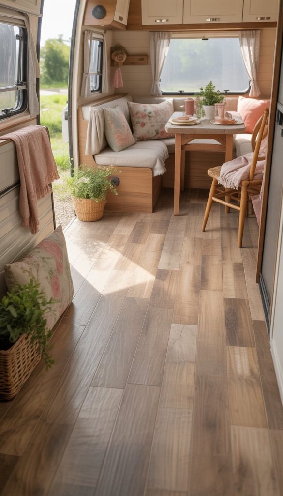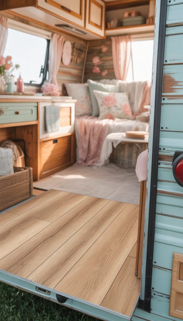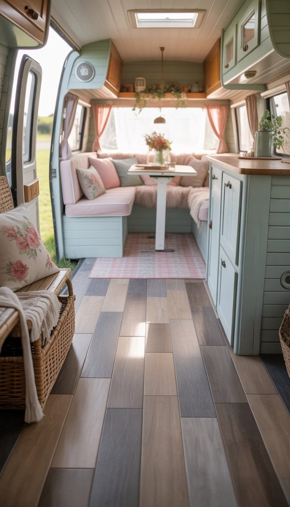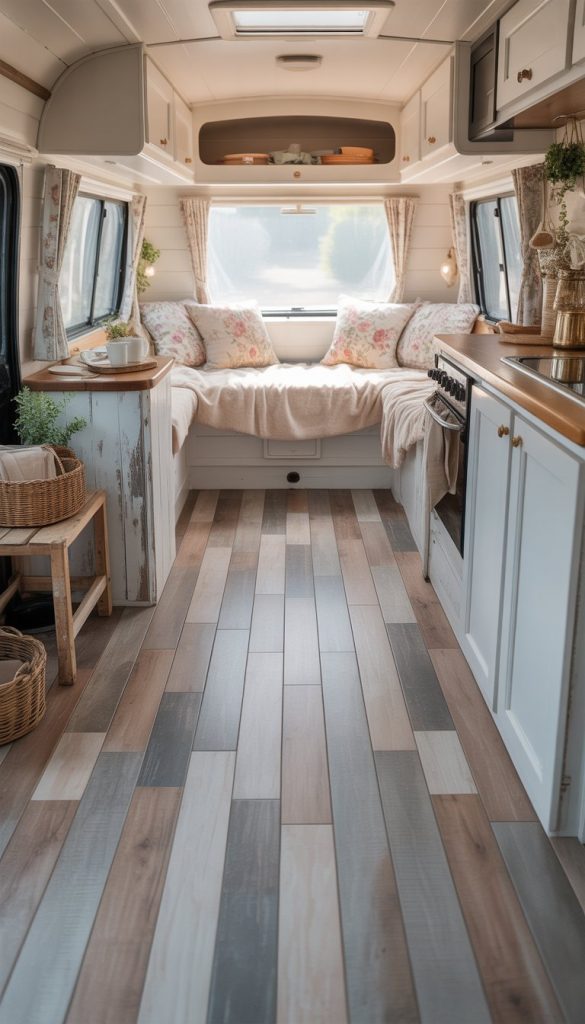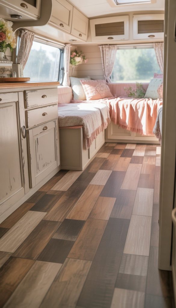 Making your shabby chick camper feel cozy doesn’t have to drain your wallet. Choosing the right flooring can change the whole look and feel without spending too much.