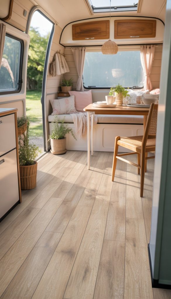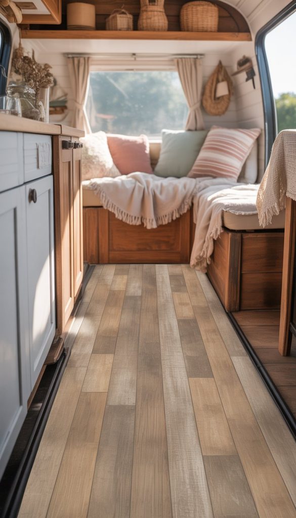 This type of flooring is also scratch-resistant and easy to clean. It stands up well to everyday wear and tear, which is helpful when you’re on the road. Plus, it usually comes with a protective finish that keeps it looking fresh.
