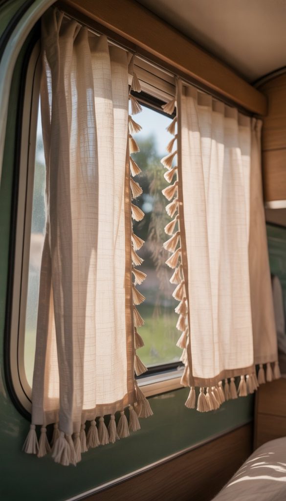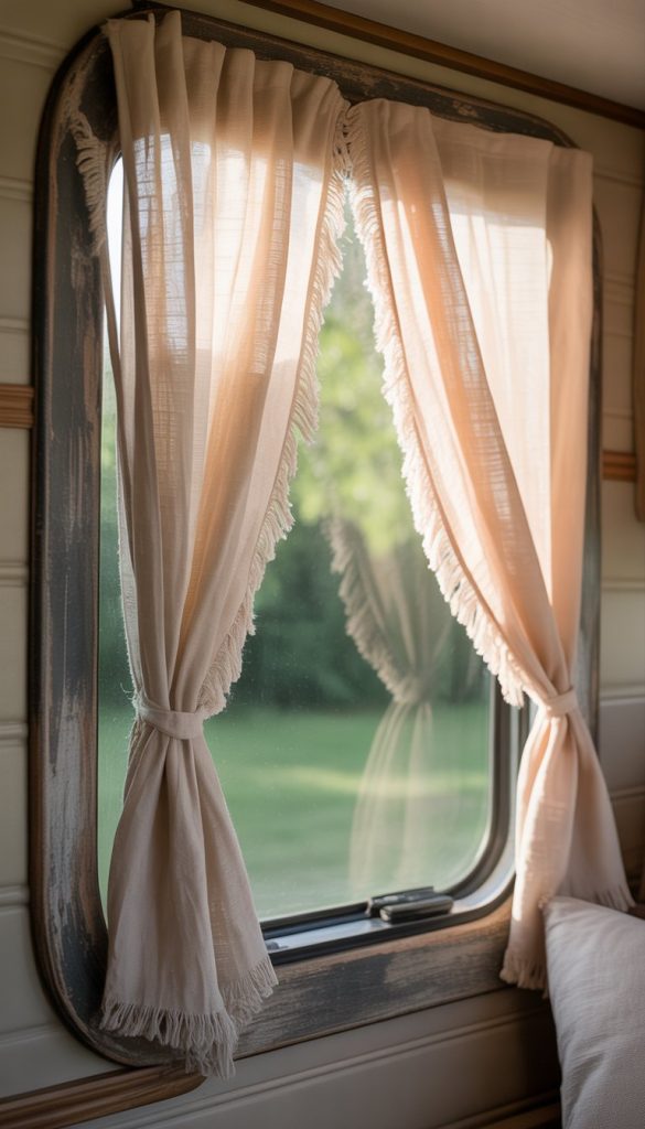 You can choose natural colors like white, cream, or light beige. These colors work well with almost any camper interior. The frayed edges give the curtains a bit of texture without needing extra decoration.
