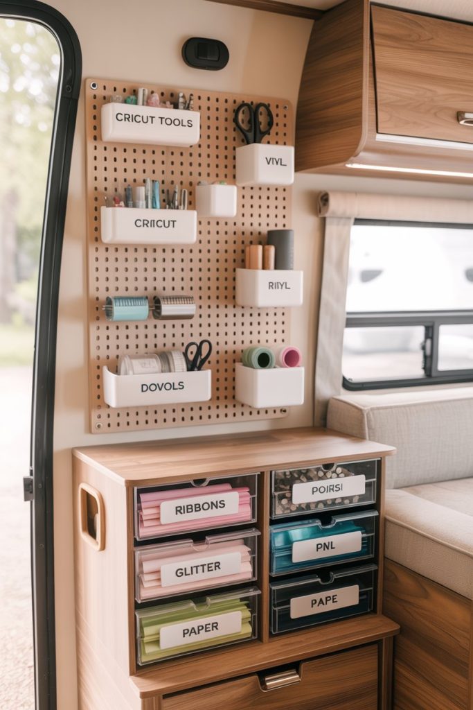 Create an efficient craft workspace in your RV with Cricut-cut organizational solutions including tool labels, storage bin identifiers, and pegboard accessories. A well-organized craft area maximizes creativity while minimizing clutter in your compact living space. Custom labels help you quickly locate supplies and maintain organization during projects.