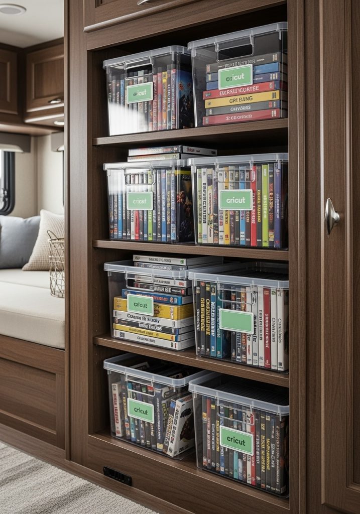 Transform your RV kitchen storage with beautifully designed Cricut-cut labels for jars, containers, and spice racks. Organization is crucial in small RV kitchens, and custom labels not only help you find ingredients quickly but also create a cohesive, professional look. Use waterproof vinyl for labels that will withstand kitchen humidity and frequent handling.