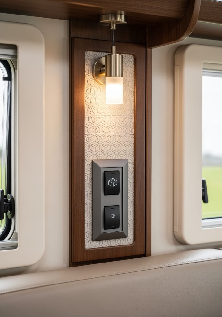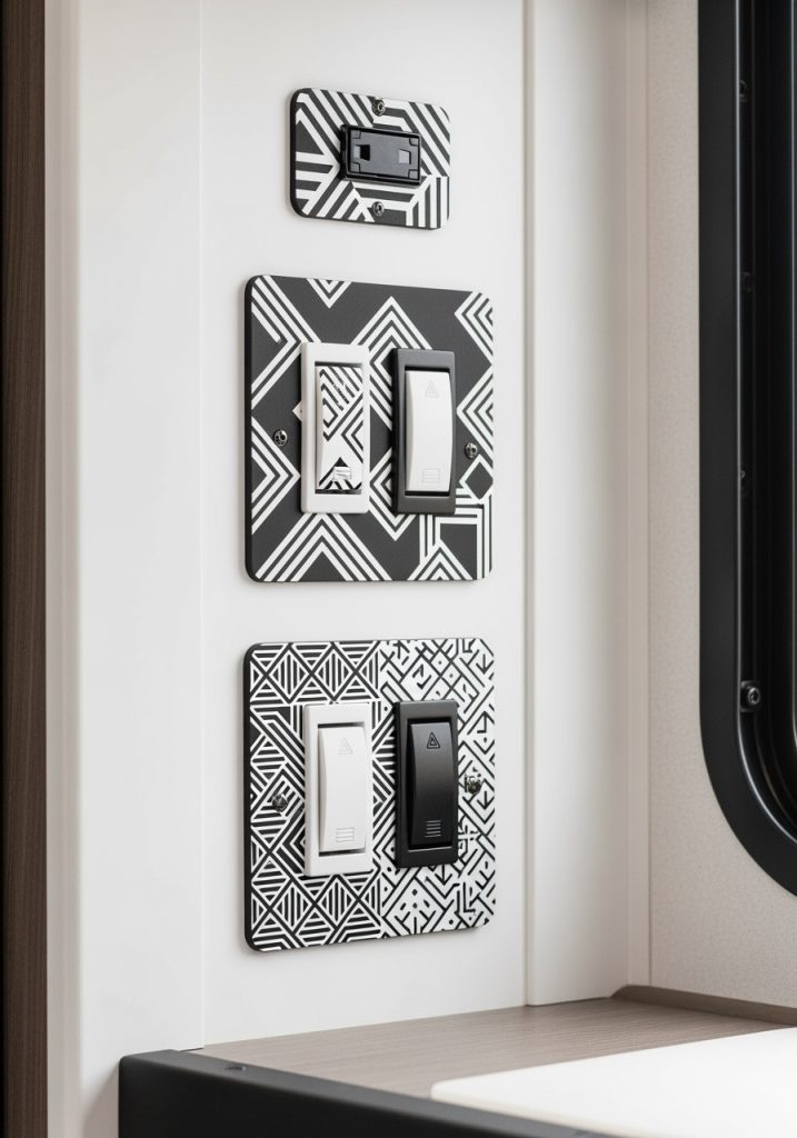 Transform basic RV switch plates and outlet covers with decorative vinyl cutouts that complement your interior design. This small detail can significantly impact the overall cohesiveness of your space while requiring minimal time and materials. Choose designs that coordinate with your color scheme and overall aesthetic.