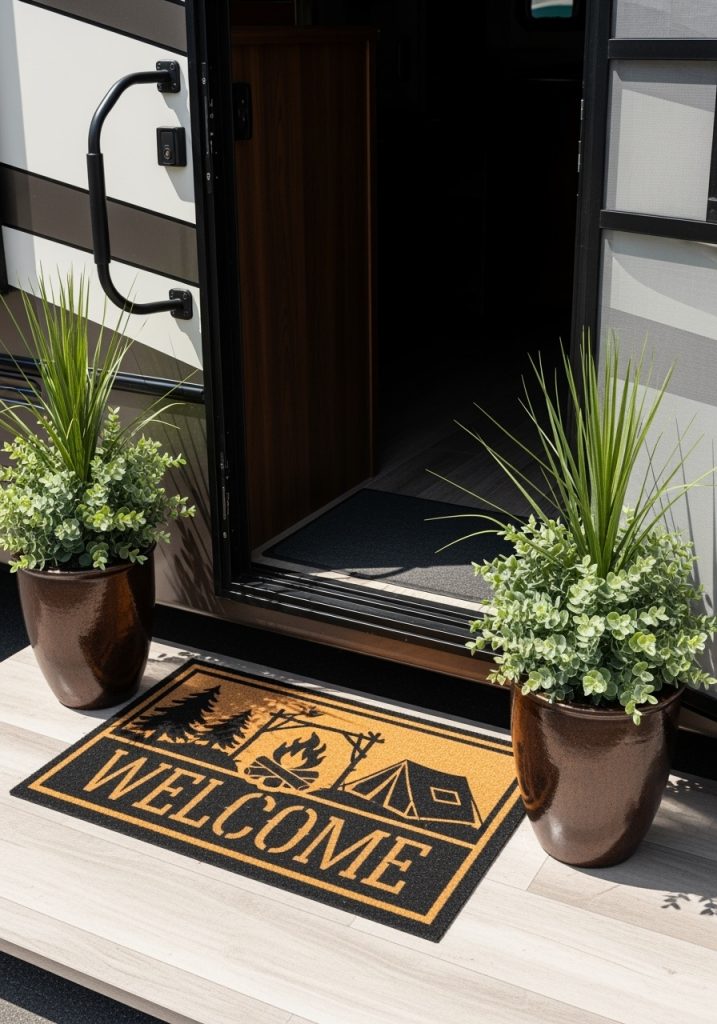 Design stencils that are practical for outdoor use while reflecting your style. Consider seasonal designs that can be easily updated, or create multiple stencils for different occasions. The entrance mat is often the first impression visitors have of your RV, making it an important design element that sets the tone for your space.