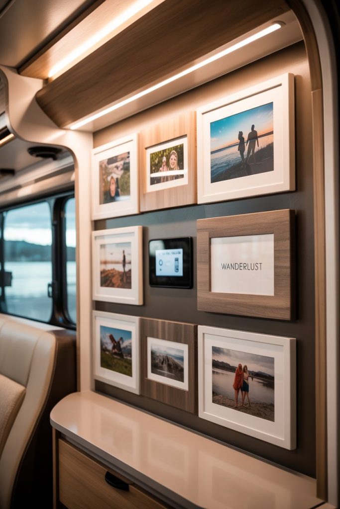 Create dynamic photo and memory display systems using magnetic surfaces, changeable frames, and interactive elements. RV living involves creating and collecting memories that deserve attractive display options. Custom systems allow regular updates while maintaining design coherence.
