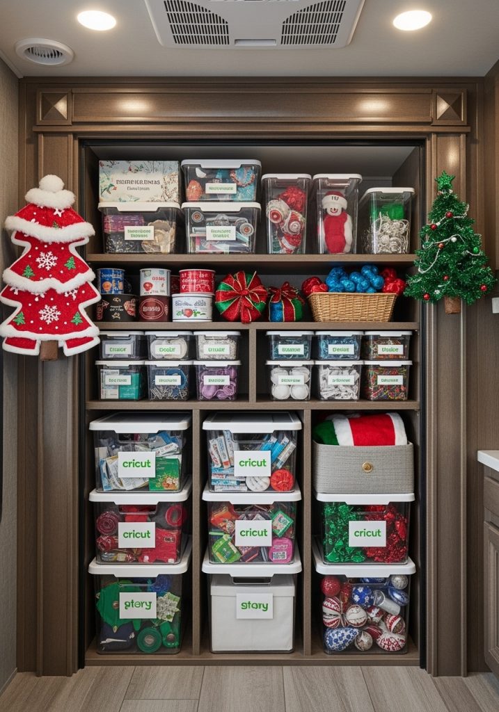 Design storage systems specifically for seasonal decorations, holiday items, and special occasion decor using labeled containers and organization aids. Seasonal decoration adds joy to RV living but requires efficient storage solutions for practical management.
