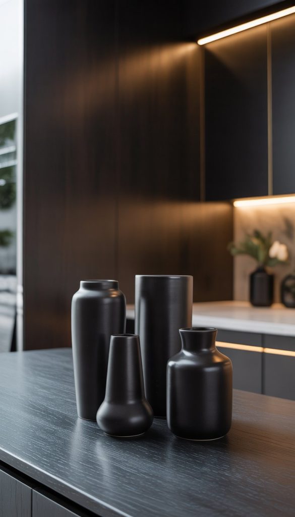 14) Black ceramic vases with minimalist design