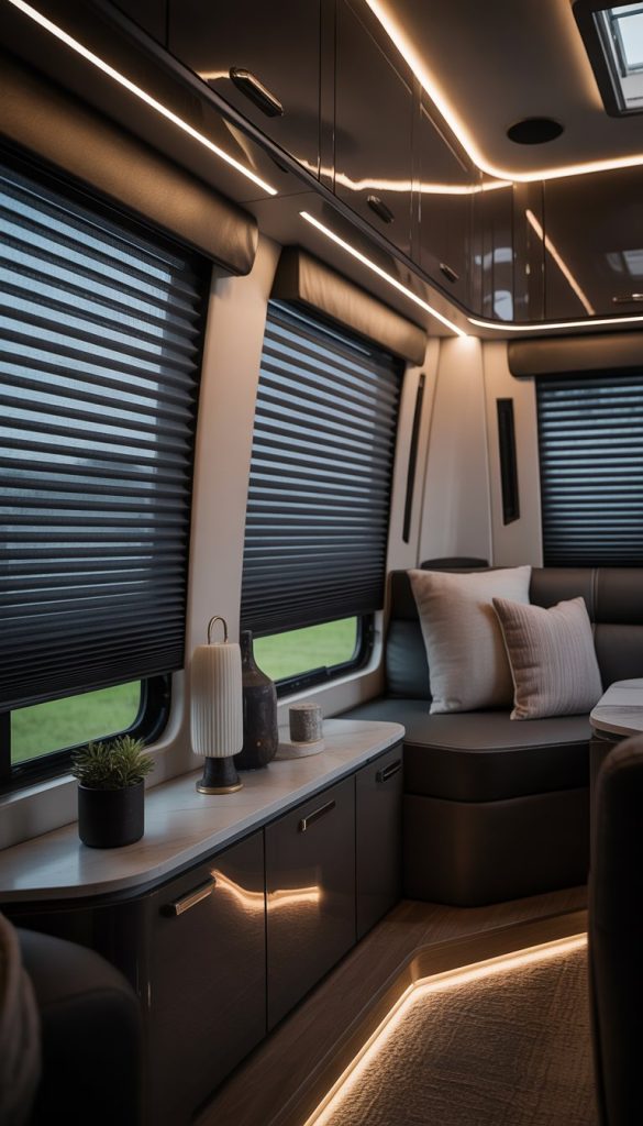 Blackout roller shades are great if you want privacy inside your RV. They block out light completely, so no one can see in from outside. This makes your space feel more secure and cozy.