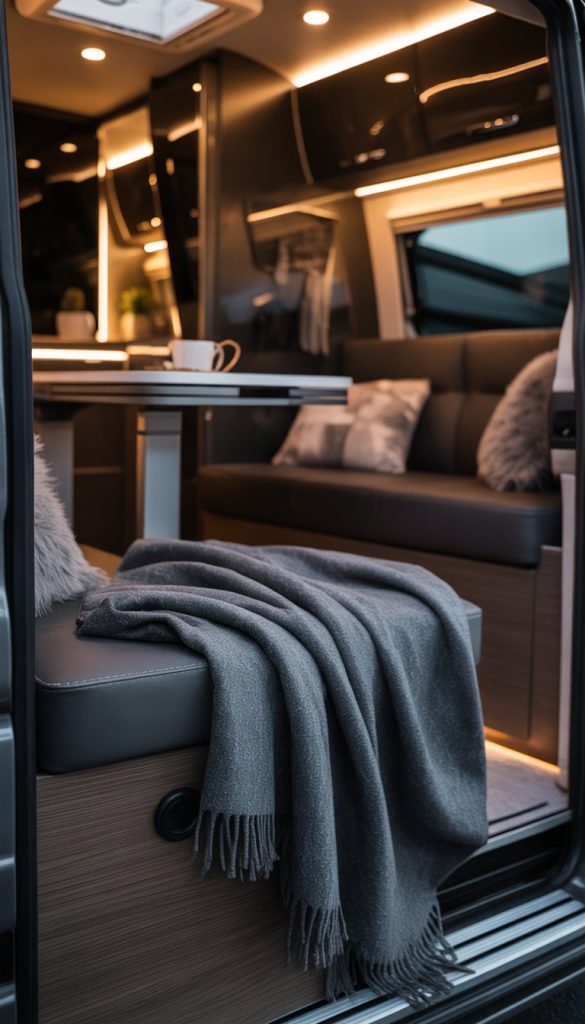 Adding a charcoal wool throw blanket can bring warmth and comfort to your RV interior. The dark color adds depth without making the space feel heavy.