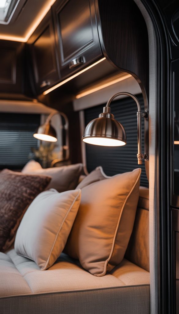 Oil-rubbed bronze reading lamps add a rich, dark touch to your RV interior. Their deep color pairs well with darker walls or wood finishes. Plus, they bring a bit of vintage style without feeling old-fashioned.