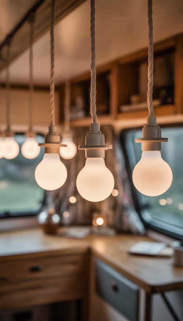 Frosted bulb pendant lights are perfect for adding a soft, warm glow to your camper. The frosted glass helps spread the light evenly, making your space feel cozy and calm.