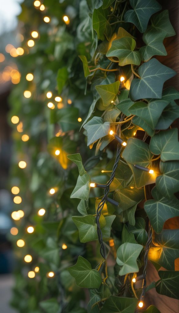 Choose warm white lights for a gentle glow. Make sure the ivy is lightweight so it won’t pull down your string lights. You can also secure the vines with small clips or twist ties for a neat finish.