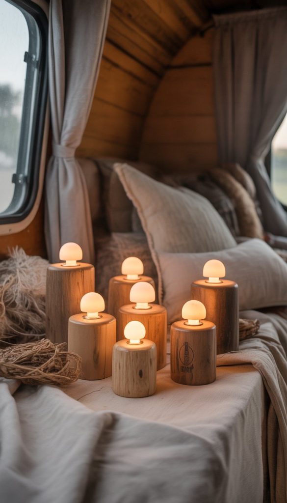 Choose lamps with dimmable LED bulbs. This lets you adjust the light to fit your mood or time of day. It makes your camper feel even more inviting and comfortable.
