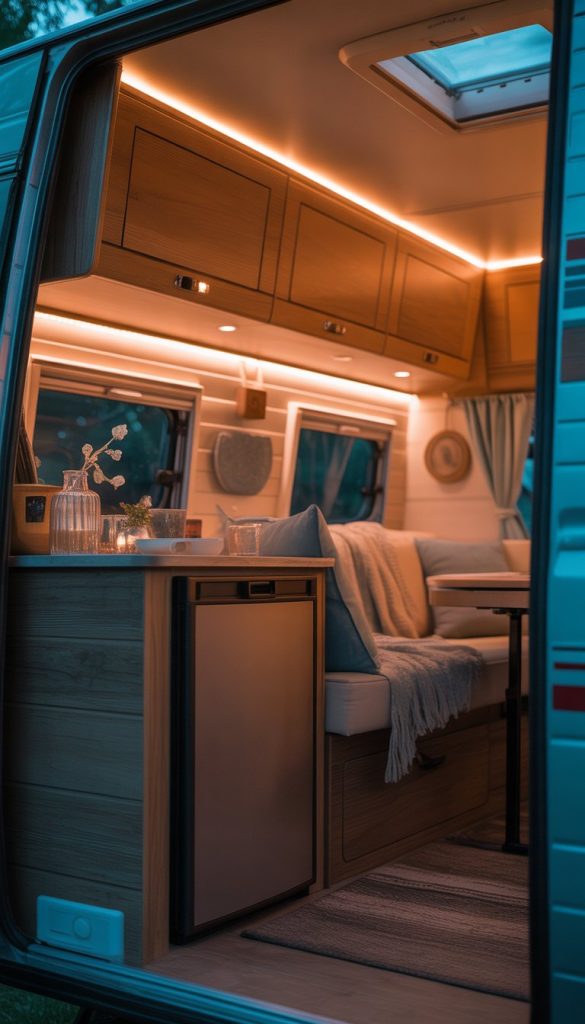 Think about lighting that not only looks nice but also saves energy and fits your camper’s small space. Good lighting can make your whole camper feel warm and welcoming.