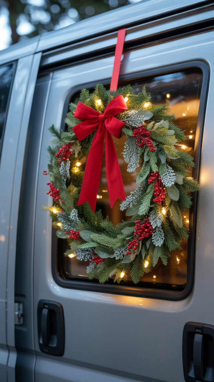 A beautiful Christmas wreath on your RV’s entry door provides the perfect welcome, signaling to visitors and fellow campers that your home celebrates the season. Choose a wreath specifically designed for outdoor use with weather-resistant materials like artificial pine, berries, and ribbon. Battery-operated LED lights integrated into the wreath add extra sparkle without requiring electrical connections. Wreaths with built-in timers automatically illuminate at dusk, creating a warm welcome without draining your battery.