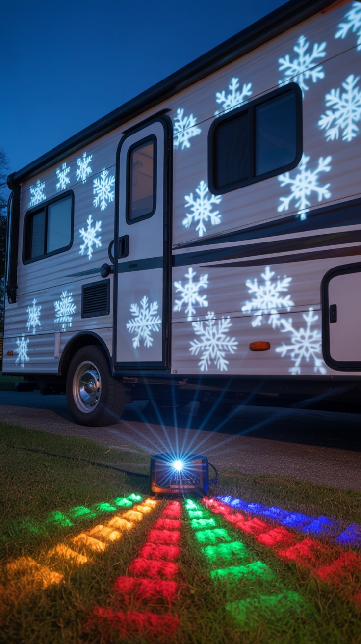 Projection lights work best on smooth, light-colored surfaces, so white or beige RVs make ideal canvases. The projections are most impressive after dark when ambient light is minimal. Because the projector remains on the ground rather than attached to your RV, it’s easy to adjust the angle and position for optimal coverage. This hands-off decorating approach appeals to RVers who want impressive displays without extensive installation or takedown time at each campsite.