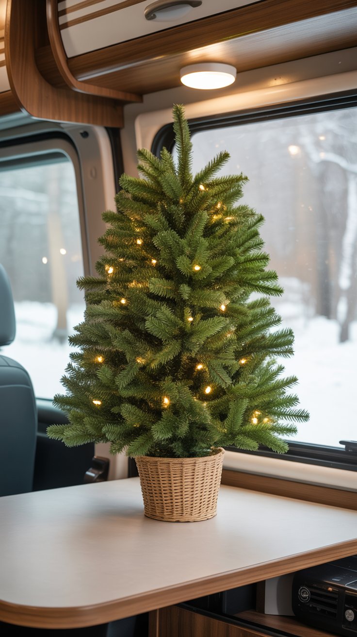 A miniature Christmas tree serves as the centerpiece of your RV’s holiday decor, bringing traditional Christmas spirit into your compact living space. Position a small tabletop tree on your dinette table, kitchen counter, or a stable shelf where it won’t tip during travel. Opt for pre-lit artificial trees to simplify setup and reduce the number of decorations you need to store. Decorate with lightweight, shatterproof ornaments that won’t break if your RV moves unexpectedly.