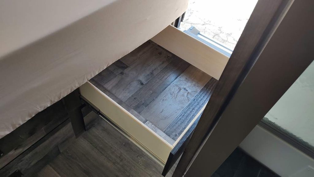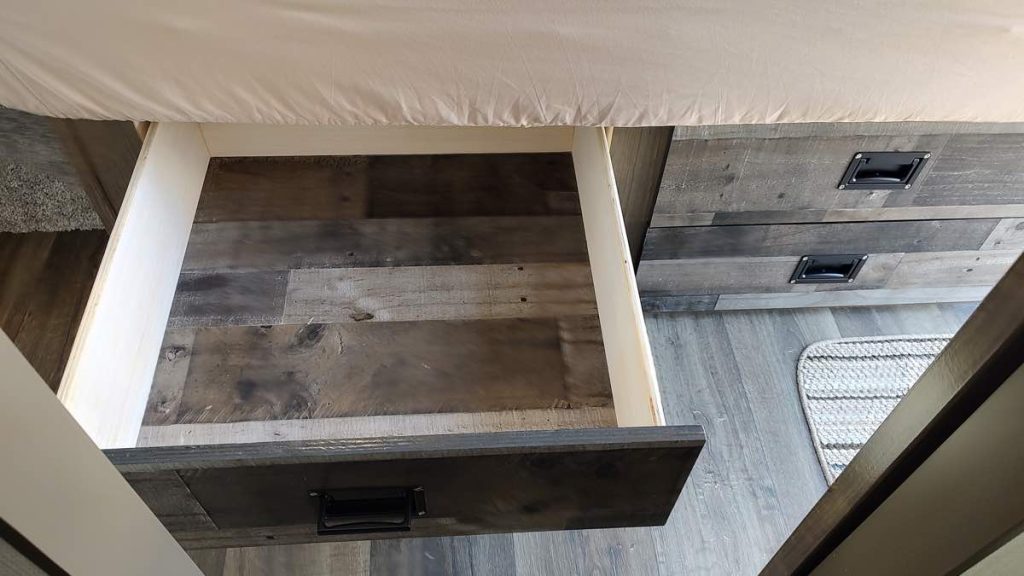 - Drawers Under the Bed: To maximize storage, Joe added drawers under the bed. This clever use of space ensures that everything has its place, making the RV more organized and efficient.