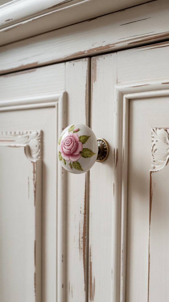 Elevate every cabinet and drawer in your camper with the simple swap to porcelain floral knobs. This tiny detail makes a massive impact, transforming standard, boring hardware into charming focal points. The delicate hand-painted flowers on a creamy white porcelain background are a quintessential shabby chic element. They add a touch of vintage elegance and a pop of soft color to your kitchen, bathroom, and storage cabinets.