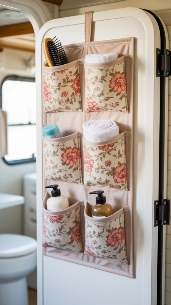 This is a soft, attractive alternative to plastic organizers and adds a layer of useful texture to your walls. It keeps small, essential items within easy reach but neatly tucked away, preventing countertop clutter and making your small space feel more organized.