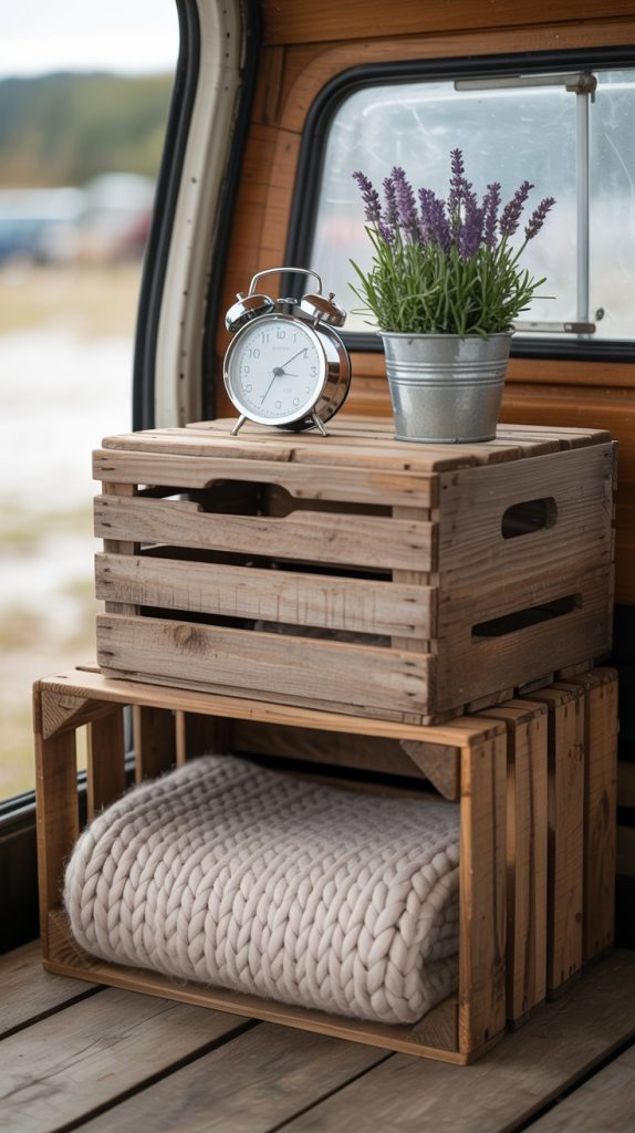 Shabby chic is as much about practical storage as it is about beauty. Weathered wooden crates are the perfect multi-functional accessory. Use them as standalone shelves, stack them to create a nightstand, or simply use them to store extra blankets, books, or dry goods. Their rustic, utilitarian look adds instant character and a sense of history to your space.