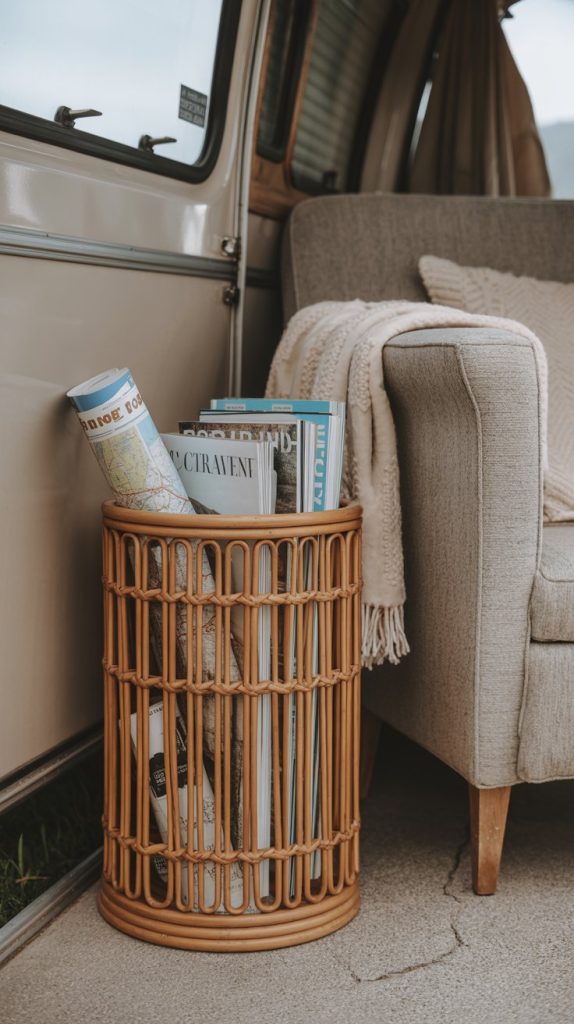 Keep your travel guides, maps, and magazines neatly organized with a stylish rattan magazine holder. The natural woven texture complements wicker baskets and wood tones beautifully. It’s a lightweight and breathable storage solution that prevents paper clutter from accumulating on surfaces.
