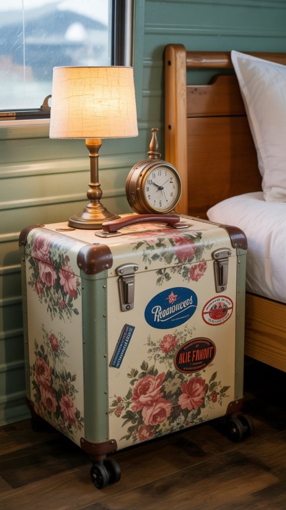 Embrace the nomadic spirit by repurposing a vintage hard-sided suitcase into a side table. Stack two similar-sized suitcases or use a single one on top of a small wooden stand. This provides a unique, multi-level storage solution and a fantastic conversation piece.