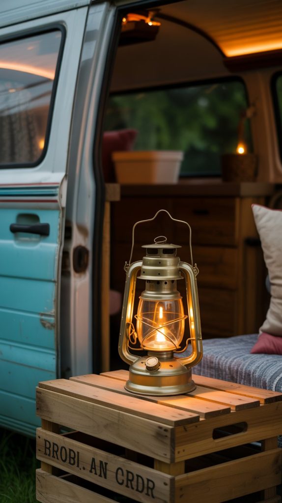 While you have modern lighting, a classic brass camping lantern is essential for ambiance. Whether it’s a functional vintage oil lamp or a modern LED replica, its warm glow is unbeatable for creating a cozy campsite atmosphere. Place it on your outdoor rug or just inside your camper door in the evening.