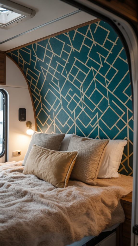An accent wall adds instant personality and depth to your RV without the commitment or cost of wallpapering the entire vehicle. Removable wallpaper is a renter-friendly (and RV-friendly!) dream product that allows you to experiment with bold patterns, textures, and colors. It’s perfect for behind the bed, the dinette, or even on the ceiling to add a surprise element. The application is forgiving; if you make a mistake, you can just peel it back and try again.