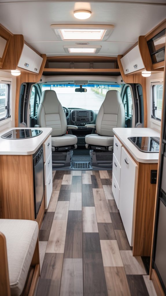 Gone are the days of dated, floral RV carpet. One of the most transformative and budget-friendly changes you can make is installing modern peel-and-stick vinyl plank flooring. This material is incredibly user-friendly; it often requires no messy glue and can be cut with a utility knife, making it a perfect DIY project. It’s durable, easy to clean, and instantly makes the space feel larger, cleaner, and more contemporary. Choose a light grey wood-look or a classic oak style to brighten up the interior and create a fantastic base for your new design.
