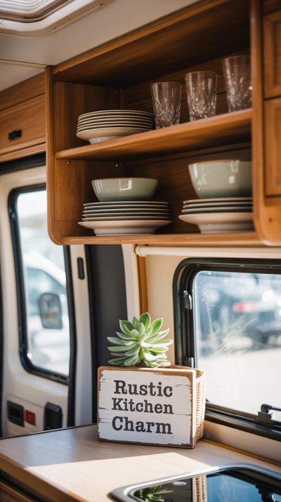 Upper cabinets can sometimes make a small RV feel closed in and claustrophobic. If you’re feeling bold, consider removing the doors from a few upper cabinets to create open shelving. This instantly opens up the space, making it feel larger and airier. It’s also a fantastic way to display beautiful dishes, glassware, or decorative items that reflect your personal style.