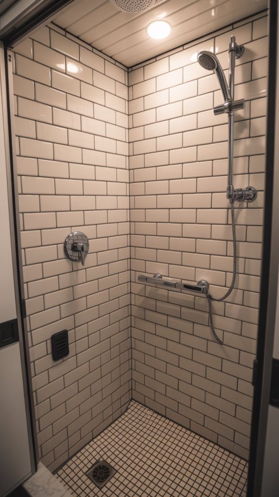 You don’t need to fully retile to give your RV shower a new lease on life. Peel-and-stick vinyl wall tiles are a waterproof and affordable solution for covering up dated, ugly shower walls. Choose a classic subway tile look or a fun mosaic pattern to create a mini spa retreat.