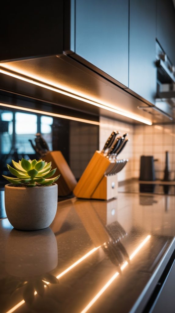 Lighting is everything in a small space. Battery-operated or plug-in LED strip lights are an inexpensive and easy way to add both task and ambient lighting without any complicated wiring. Place them under cabinets to illuminate your countertops for cooking, along the ceiling for modern accent lighting, or even under the bed frame for a cool, floating effect.