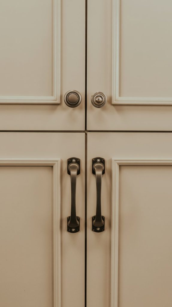 When choosing new hardware, consider the style you’re going for. Bin pulls offer an industrial vibe, cup pulls are great for a farmhouse look, and sleek, minimalist bars feel modern and clean. Be sure to measure the distance between the screw holes on your existing hardware (“center-to-center” measurement) to ensure your new pieces will fit without having to drill new, unwanted holes.