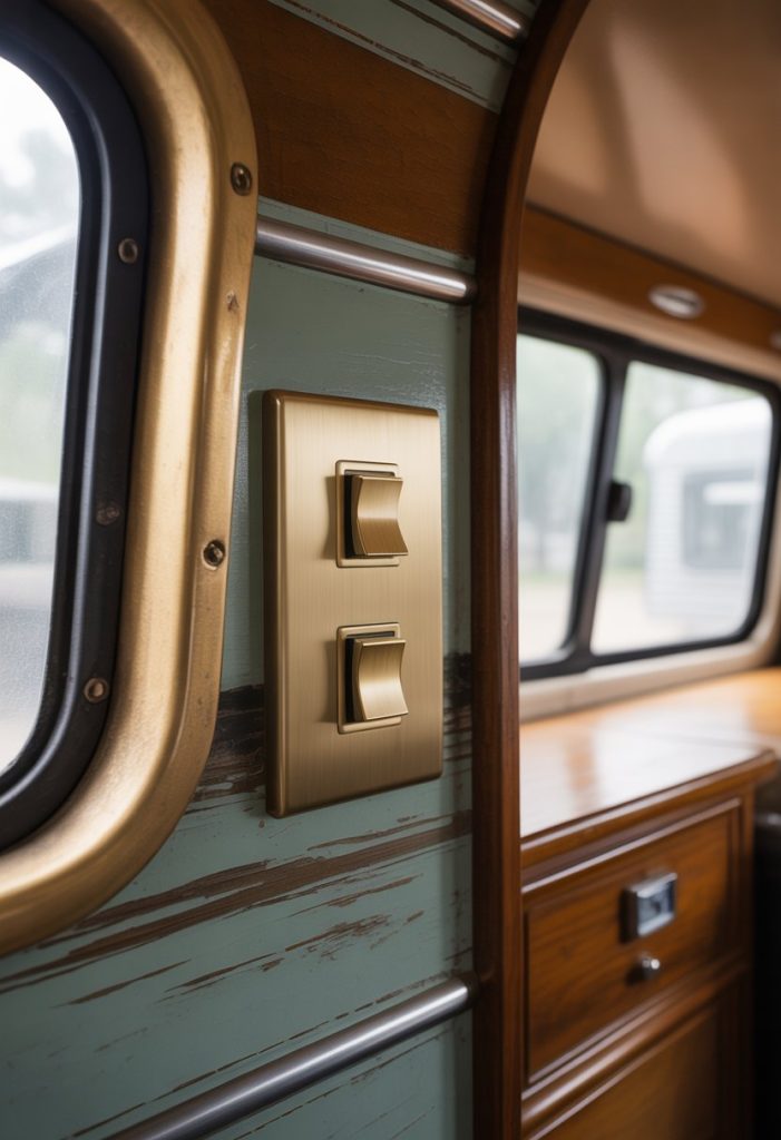 It’s all in the details! Those boring, generic white plastic switch plates are a missed opportunity in your old RV. Swapping them out for stylish plates in brushed brass, aged bronze, or even colorful ceramic can subtly elevate every room. This is a five-minute, under-$5-per-switch upgrade that shows you’ve paid attention to every aspect of the design.