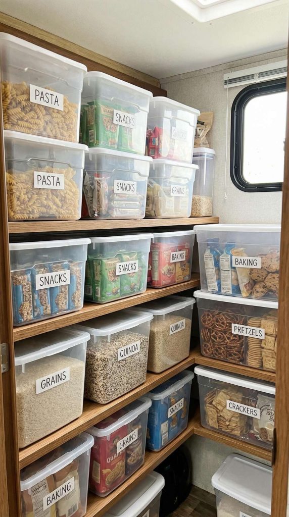Invest in quality bins with secure, latching lids designed to stay closed during travel. Use a consistent labeling method throughout your RV—whether printed labels, label maker, or permanent marker—and include both contents and destination on each label for quick reference.