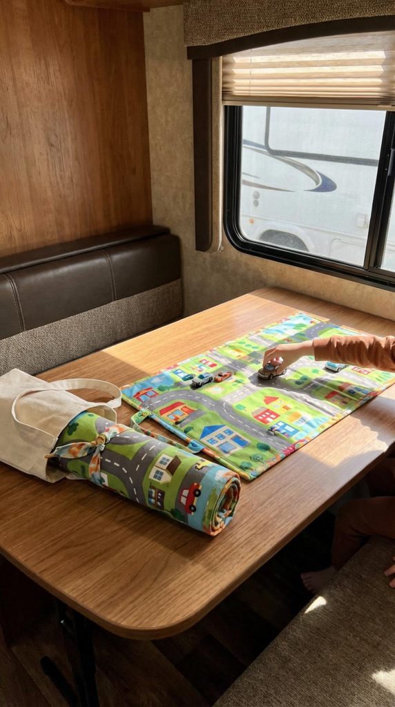 The defined play area helps contain toys and creates boundaries for where playing happens, protecting other areas of the RV from being overtaken by scattered toys. Play mats work on tables, floors, or even outdoor picnic tables at campsites, providing flexible play options regardless of location. The portable nature means kids can take their entire play setup outside when weather permits, freeing up interior space.