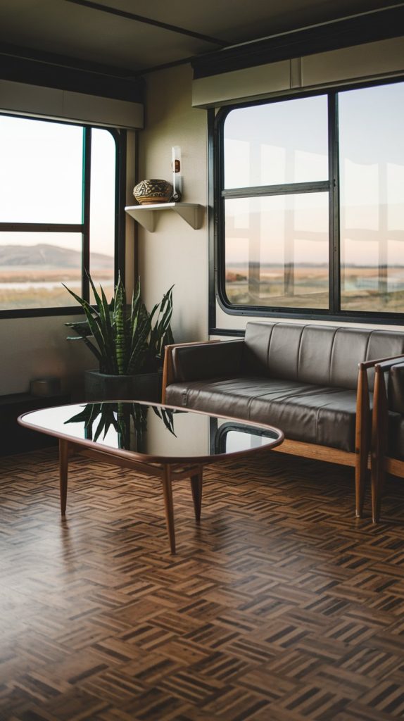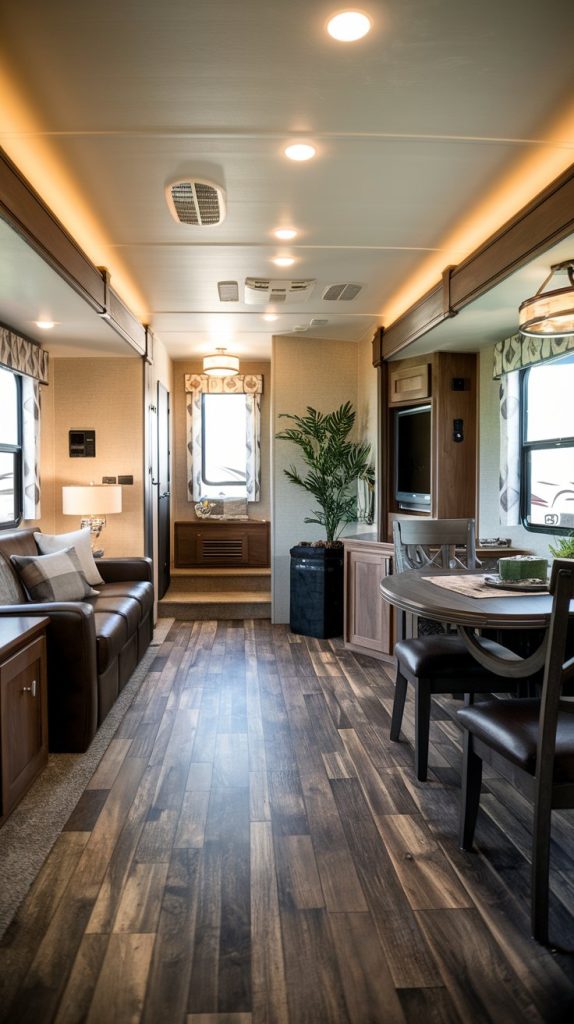 Traditional hardwood flooring adds a touch of luxury to any RV interior. It is available in a variety of wood species, colors, and finishes, allowing you to create a custom look. Hardwood is also durable and can be refinished to restore its beauty over time.