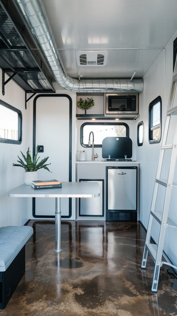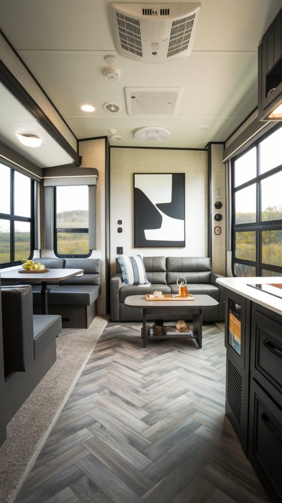 Concrete flooring is a modern and durable option for RVs. It is highly resistant to scratches, water, and stains, making it easy to maintain. Concrete can also be polished or stained to create a variety of looks, from industrial to chic.