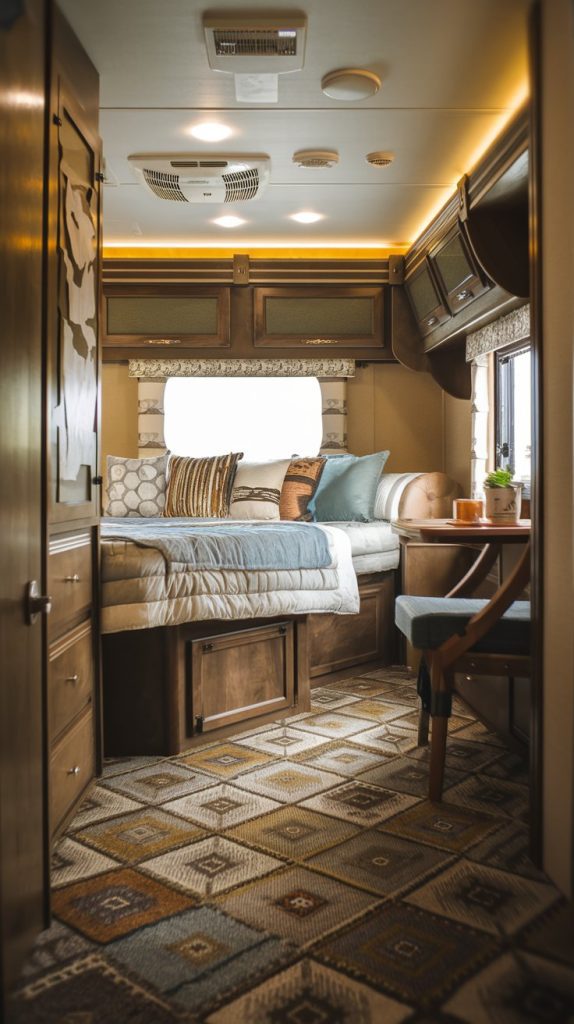 Traditional carpet provides warmth and comfort, making it a great choice for RV bedrooms and living areas. It comes in various textures and colors, allowing you to create a cozy and inviting atmosphere in your RV.