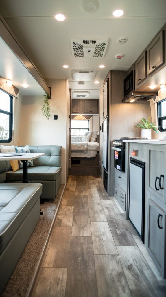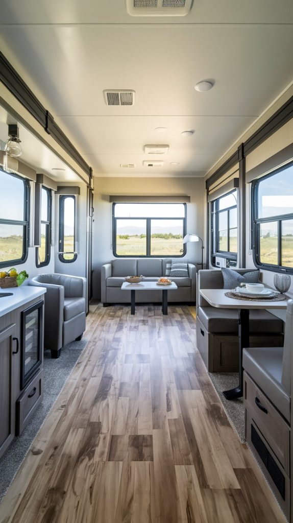 Vinyl plank flooring is a versatile and durable option that mimics the look of real wood. It is easy to install and maintain, making it a popular choice for RVs. Vinyl plank flooring is also water-resistant, making it ideal for kitchens and bathrooms.