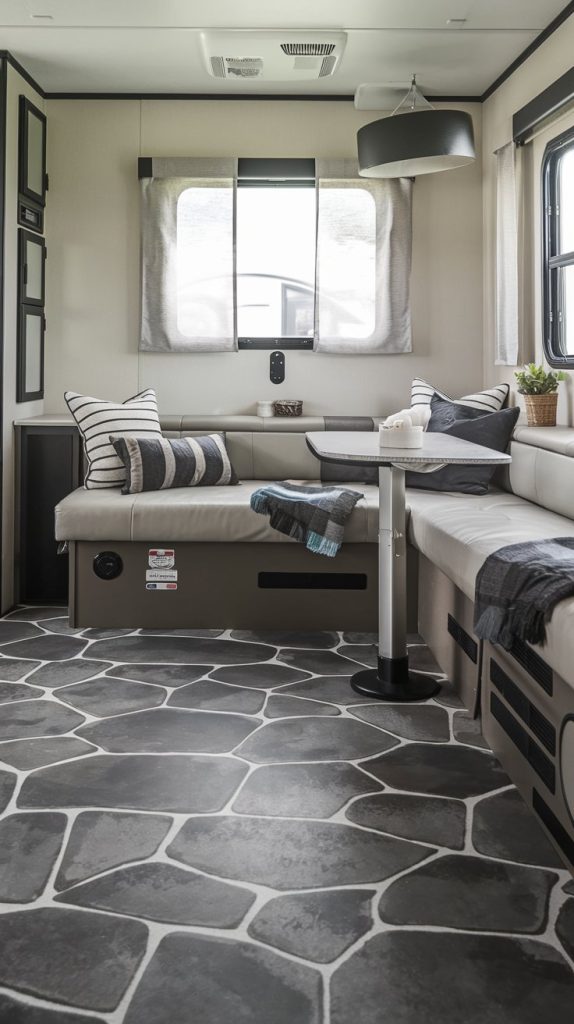 Peel and stick vinyl tiles are an easy and affordable way to update your RV flooring. They come in a variety of designs and are simple to install, making them perfect for DIY enthusiasts. These tiles are also durable and easy to maintain.