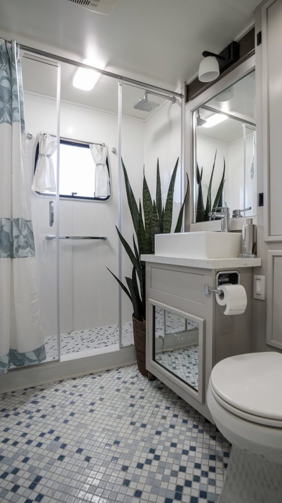 Mosaic tile is a decorative and durable option for RV bathrooms and kitchens. It is made from small pieces of glass, stone, or ceramic, creating a unique and colorful look. Mosaic tile is also water-resistant and easy to clean.