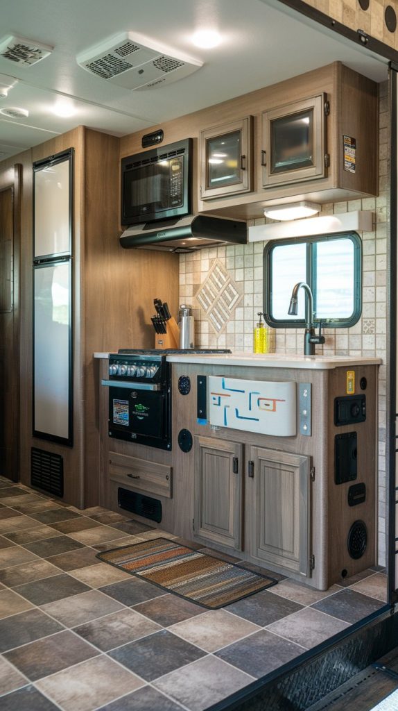 Ceramic tile is a durable and stylish option for RV bathrooms and kitchens. It is resistant to water and stains, making it easy to clean and maintain. Ceramic tile also comes in a variety of colors and patterns, allowing you to customize your RV’s look.