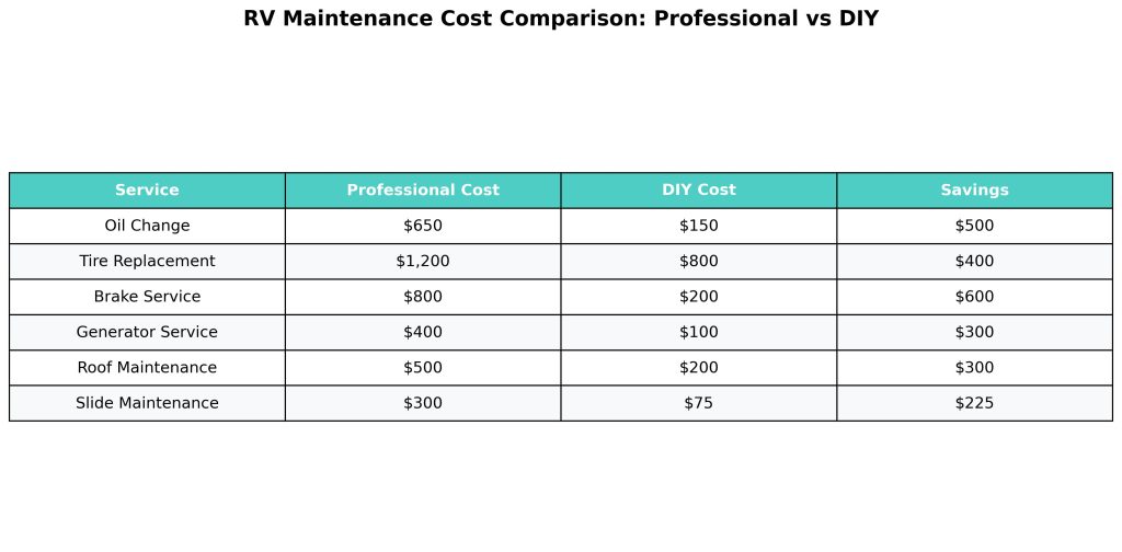 The maintenance reality: Regular maintenance on a diesel motorhome can cost $3,000-$5,000 annually when done professionally, but drops to $1,000-$2,000 when you handle basic tasks yourself.