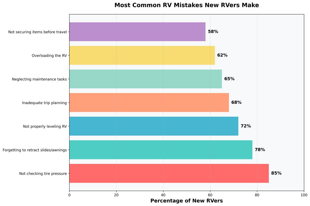 The statistics are staggering: 85% of new RVers admit to not properly checking their setup before departure, and 78% have forgotten to retract slides or awnings at least once. These aren’t just minor inconveniences – they’re potentially dangerous and expensive mistakes that can ruin your entire trip.