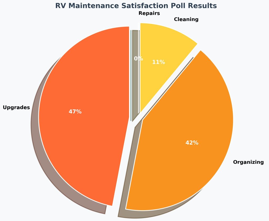 Perhaps the most telling result of our poll: absolutely zero RVers said repairs were their most satisfying maintenance task. Not a single response! This speaks volumes about the RV owner mindset.