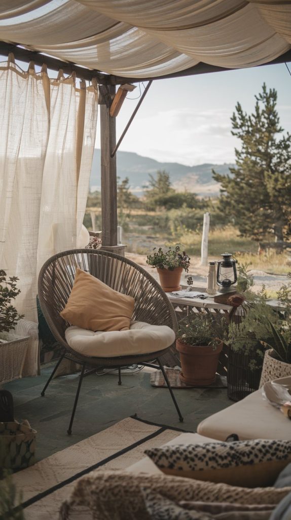 The use of soft fabrics draped to shield against the wind adds both style and function. These simple curtains can make a huge difference in keeping your space feeling secluded and peaceful. They allow you to enjoy the fresh air without being disturbed by gusts of wind.