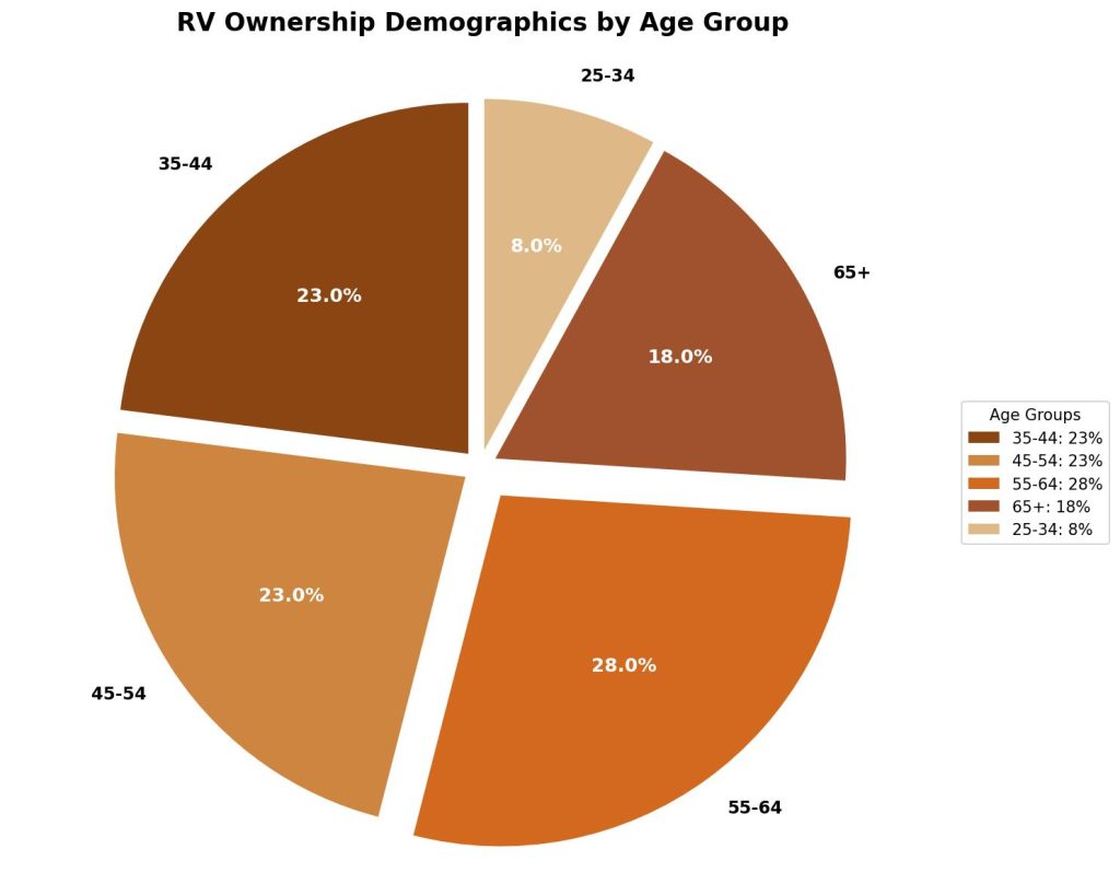 Here’s where it gets interesting: the demographic data shows that 46% of RV owners are between 35-54 years old, with the median age dropping from 53 to 49 in recent years. These aren’t retirees on fixed incomes – they’re working professionals who can afford the ongoing costs of RV ownership.